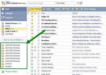Another little known fact is that emails take up very little space and many people use Outlook as a way to store old emails that you might need to revisit. You can even search by subject and sender. I have made additional folders to store school related information by the year, so that I can attempt to keep my inbox area uncluttered. As you can see in the image below, I have separate folders for school years going back to 2009. I don’t store all emails there, just informative emails that relate to that school year (final exam schedule, educational development days, schedules, etc.)